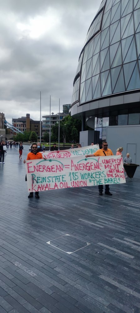 ΔΙΑΔΗΛΩΣΗ ΑΛΛΗΛΕΓΓΥΗΣ ΣΤΟΥΣ ΕΡΓΑΖΟΜΕΝΟΥΣ ΣΤΑ ΠΕΤΡΕΛΑΙΑ ΚΑΒΑΛΑΣ-ΛΟΝΔΙΝΟ 26/05/2022 ΜΕ ΤΗ ΣΥΜΜΕΤΟΧΗ ΤΗΣ IWW ΚΑΙ ΤΗΣ EARTH STRIKE UK